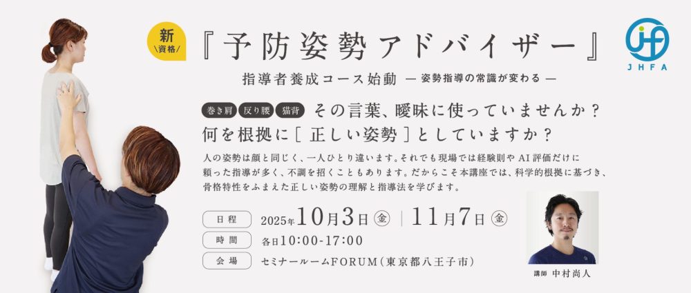 一般社団法人日本ヘルスファウンデーション協会は、怪我や病気の予防に関する正しい知識の普及・啓蒙を行い、運動指導者を通じて、国民の健康の基盤づくりを推進しています。